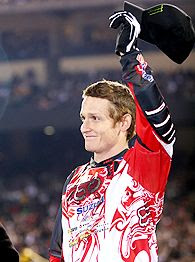 In the 450 A-Main, Hondra rider Trey Canard broke through the starting gate to get the holeshot and the lead, coming out of Turn 1. Villopoto made his move, breaking free from now second place Canard. Canard raced hard in second, with the rookie points leader Ryan Dungey trailing closely in third. Dungey took second from Canard, but wasn't able to catch up to the very fast No. 2 of Villopoto in the late stages of the race. Dungey finished the night with a very competitive 2nd place finish, while Canard raced hard for a third place showing. Fourth went to the always competitive Ivan Tedesco, while Kevin Windham raced through the field to pick up the fifth finishing spot. The fifth place finish at Toronto gave Windham his 100th career Top 5 finish in AMA Supercross competition. Personally, that is amazing. I give a big shout out to Windham, one of the best to race AMA Supercross.